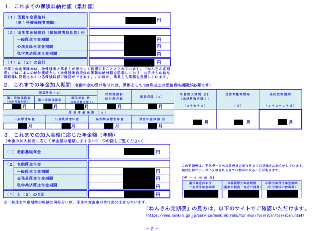 ねんきん定期便をチェックしても