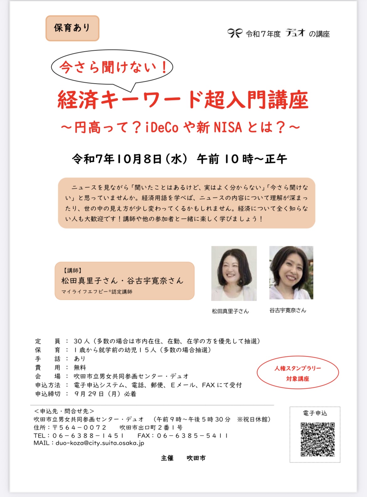 10月8日(水) 吹田市立男女共同参画センター・デュオにて