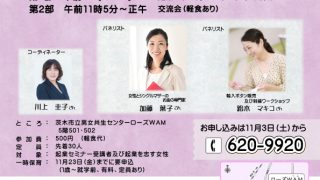 茨木市主催「起業したい女性の交流会~ゆめを夢で終わらせない!!~」(12/2)